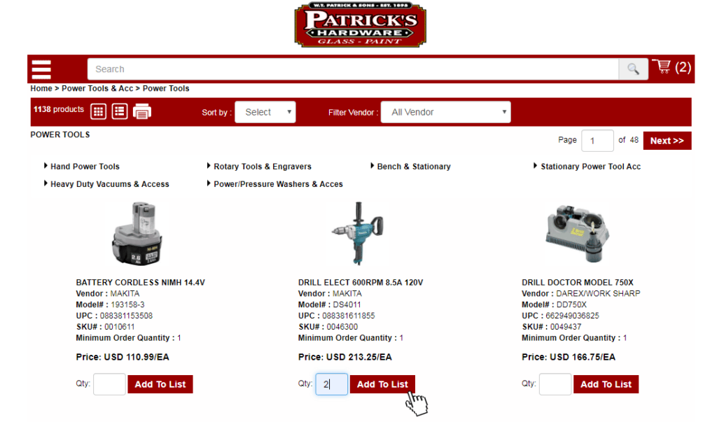 Patrick’s Hardware offers a shopping catalog featuring tens of thousands of hardware related items categorized to easily find what you need at competitive pricing. Please review the instructions below to place a pick-up or delivery order from Patrick’s Hardware location on Queen Street, Hampton, VA.